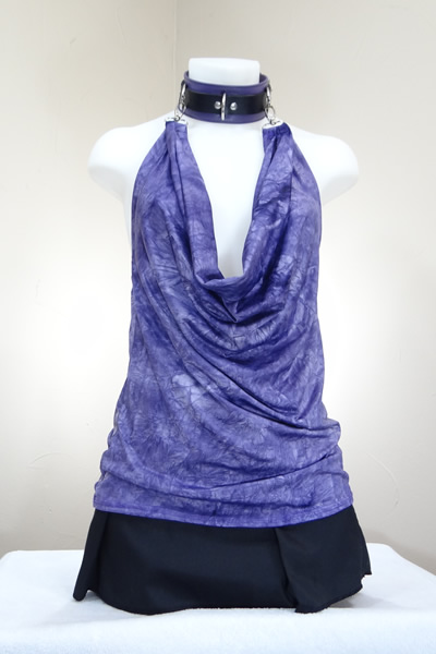 Purple Cowl Neck & Leather Collar
